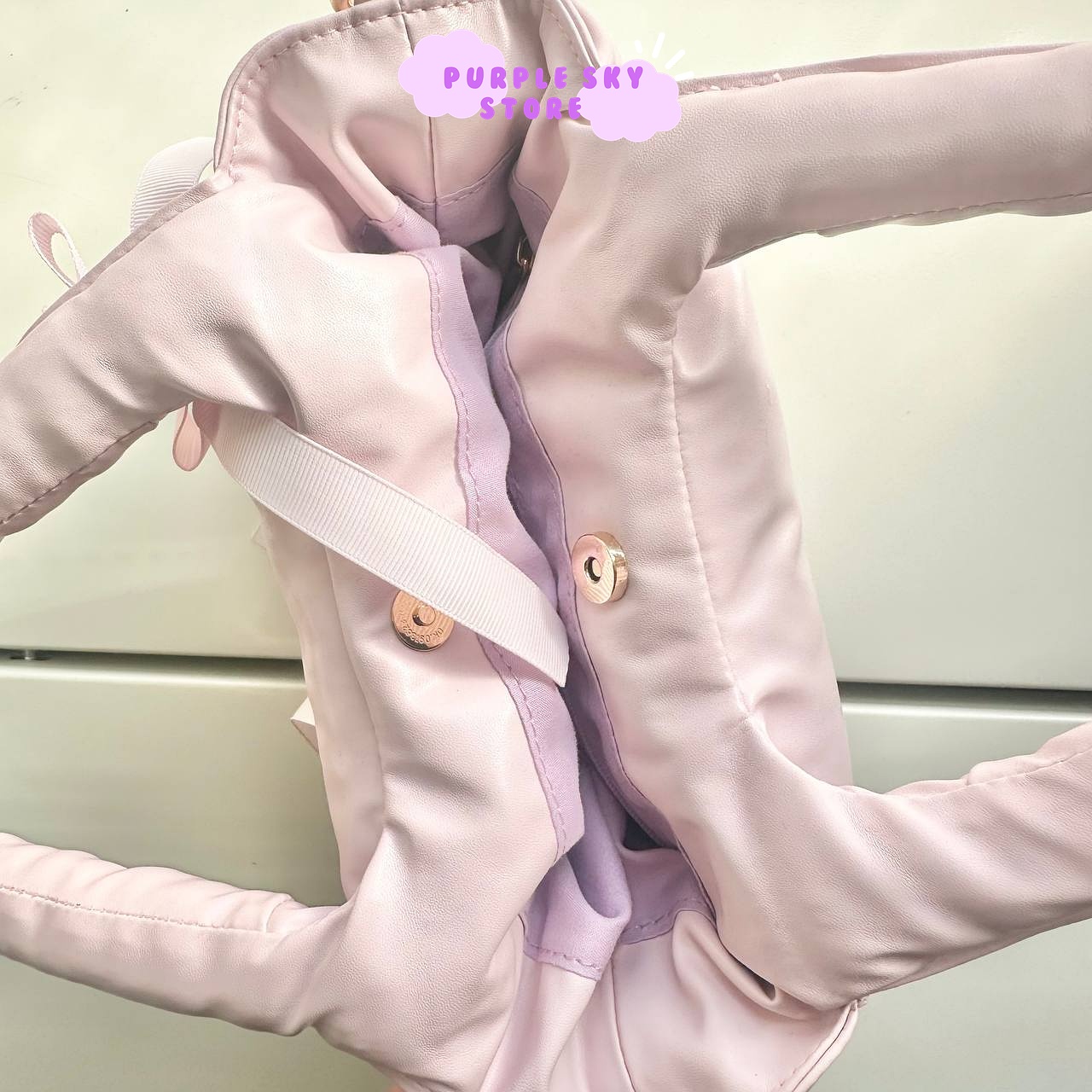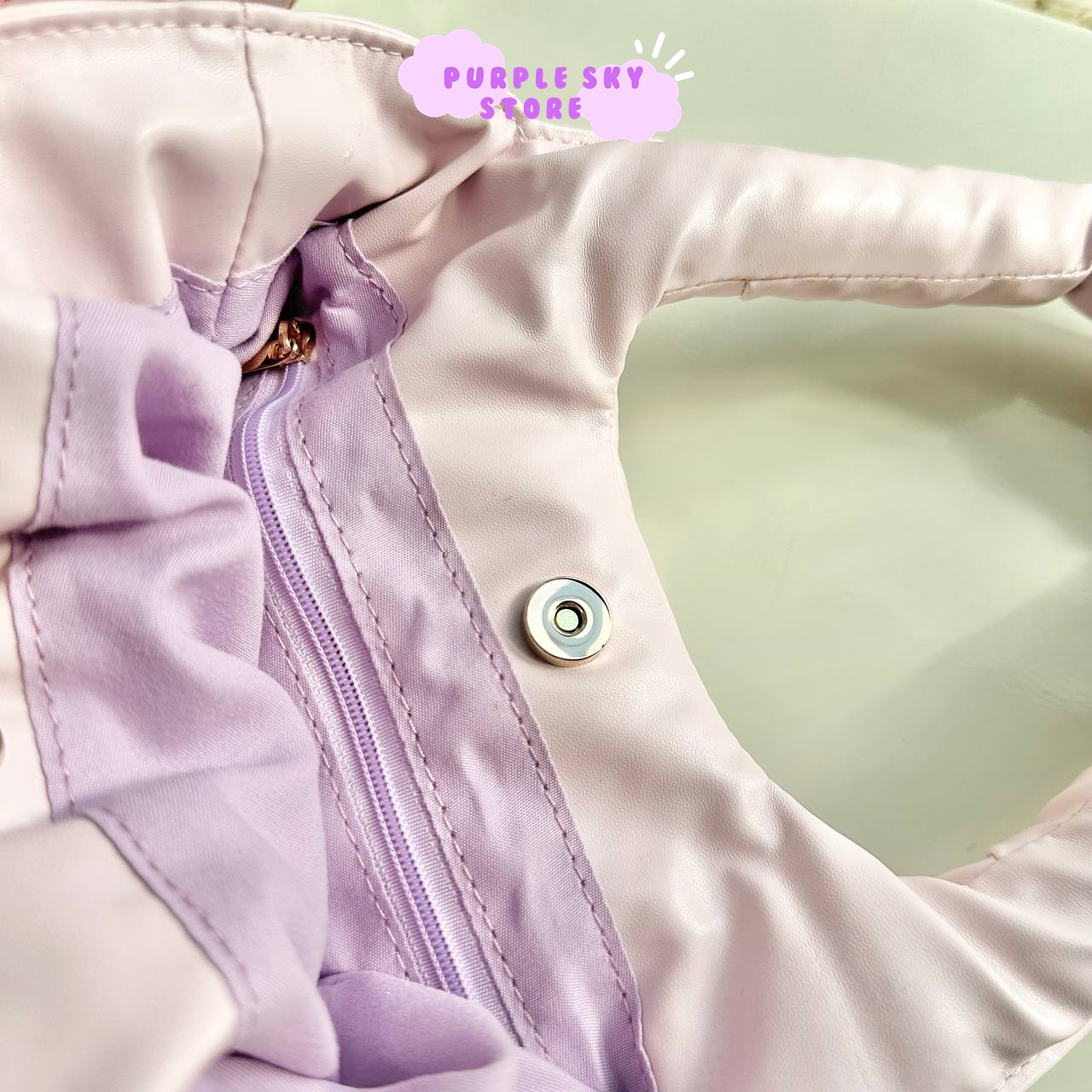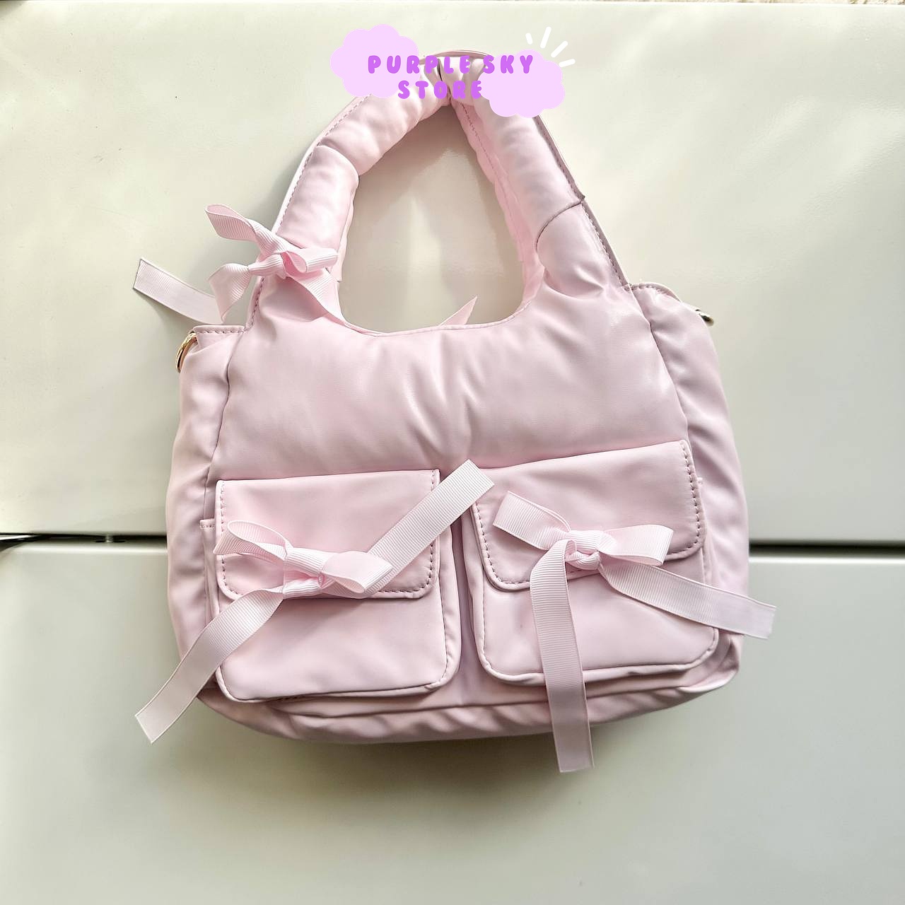حقيبة متوسطة الحجم بلون وردي ناعم، مصنوعة من الجلد بملمس مريح.