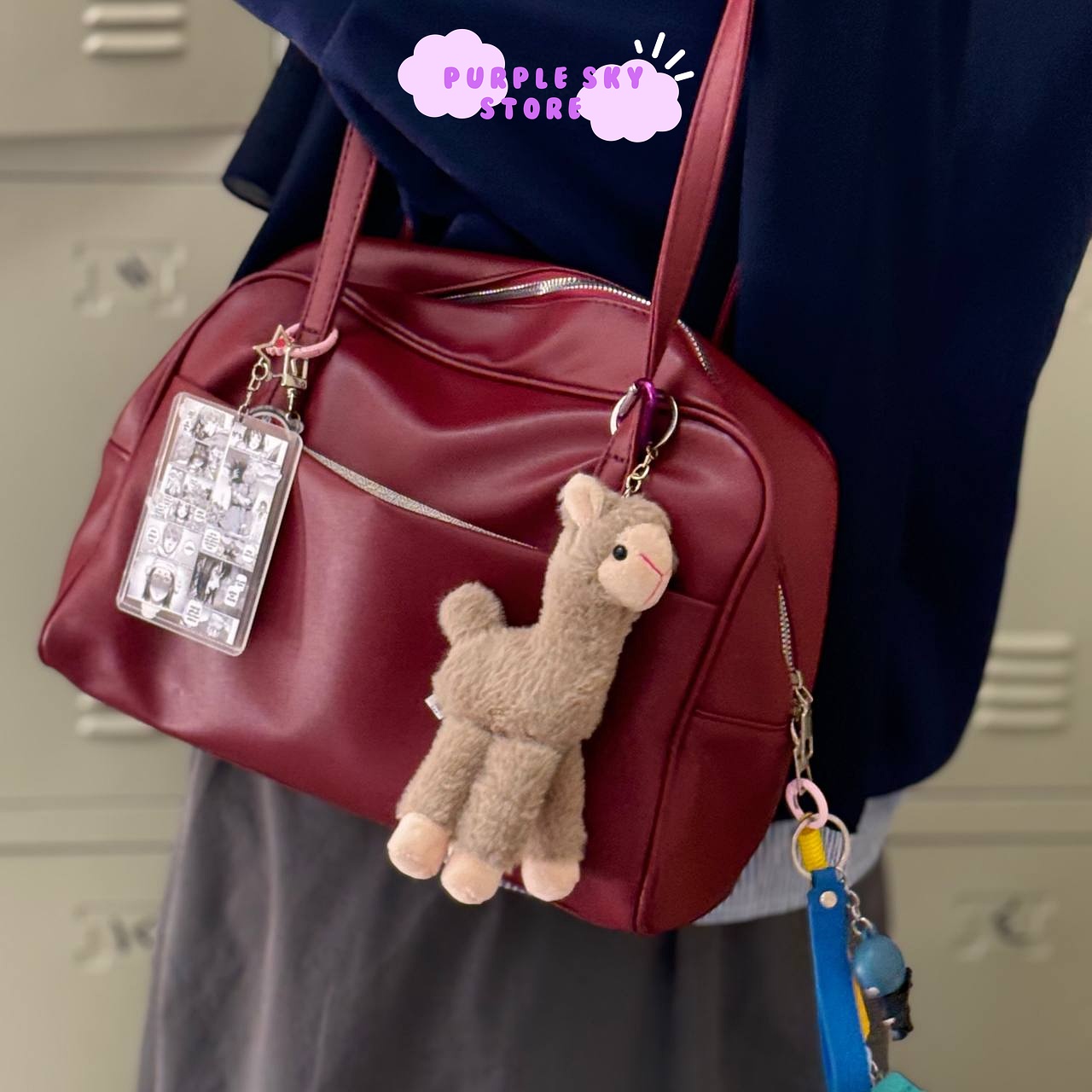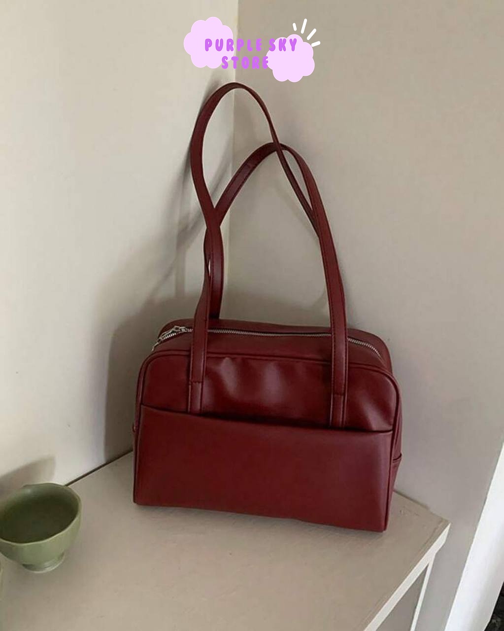 حقيبة حمراء جلد واسعة، تتميز بمظهر رسمي وبسيط يضيف لمسة من الأناقة إلى كل إطلالة. تصميم عملي يناسب احتياجاتك اليومية ويوفر لك مساحة كافية لتنظيم أغراضك بسهولة